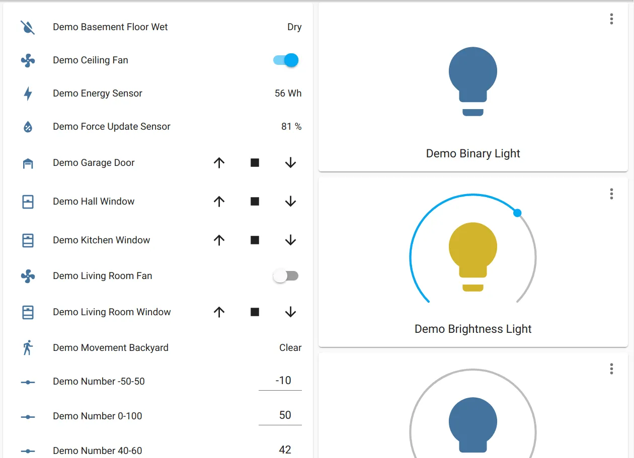 The demo component can be used for testing to generate sample instances of many different components (sensors, lights, …)